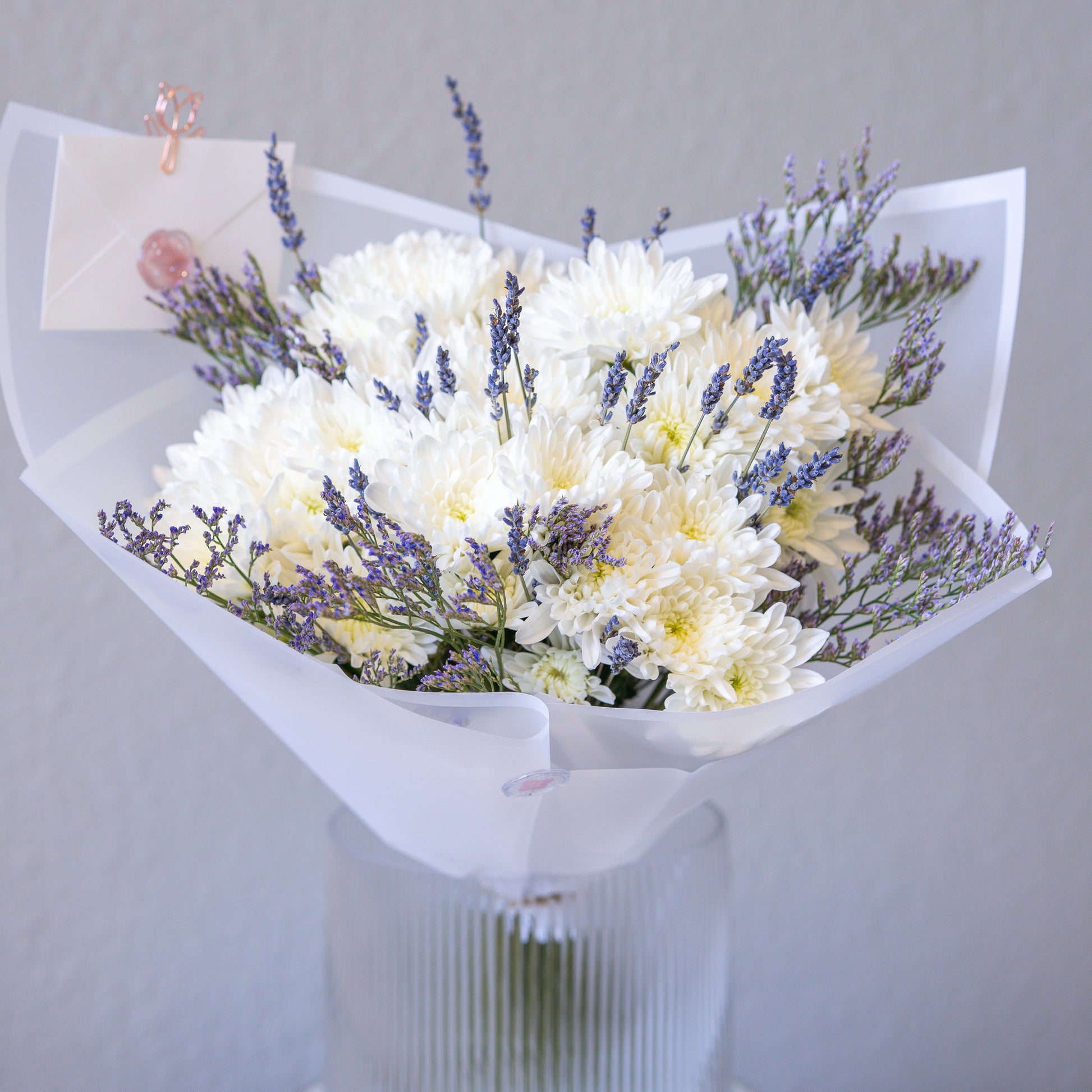 This arrangement features a harmonious blend of soft violet flowers with white pureness, evoking a sense of serenity and relaxation. Whether adorning your home or serving as a thoughtful gift, the Calm and Violet Bouquet brings a touch of quiet beauty to any space, inviting moments of stillness and reflection.